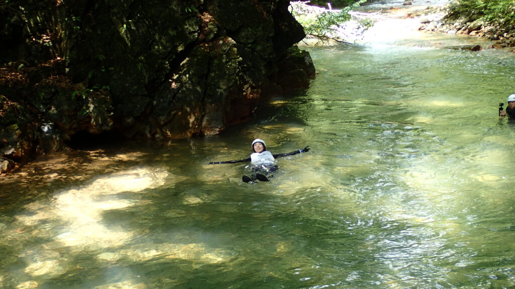 専任のガイドがお客様の体力に合わせながら無理のないツアーをサポートいたします。往復1キロぐらいの距離を歩ける方なら、どなたでもご参加いただけます。川には一部深い場所はありますが、ほとんどの場所が膝下程度の足のつく浅瀬を進みます。泳げない方でも浮力のあるライフジャケケットを着用していただきますので、溺れる心配はありません。ただし、体験場所は自然の川ですので、滑りやすい場所や流れが早い場所があることをご理解のうえ、お申し込みください。