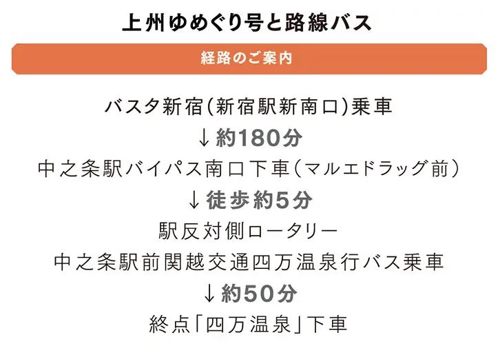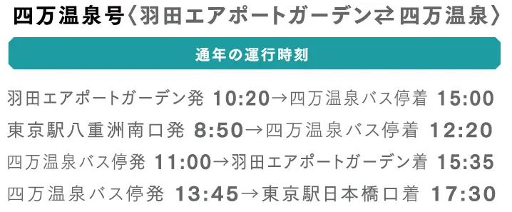 東京方面から四万温泉へお越しのお客様へ。直通の各社高速バスが運行しております。