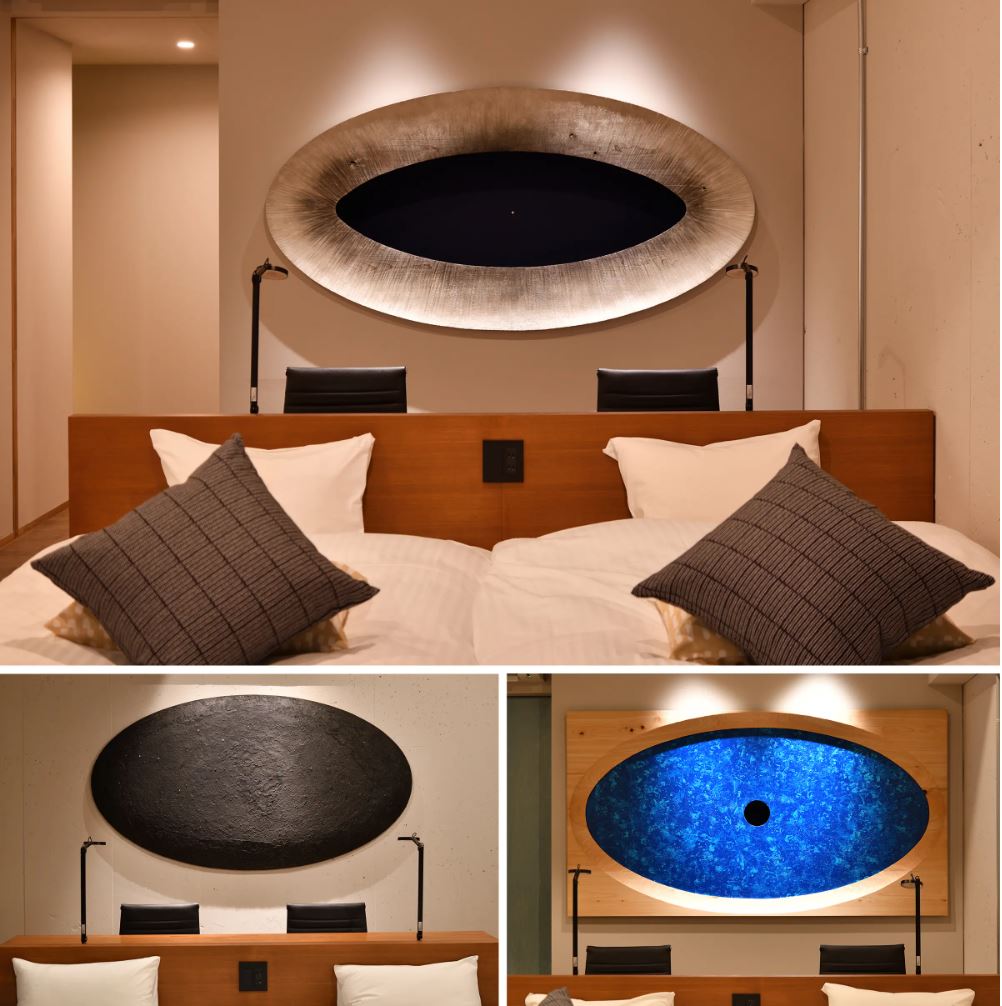 SHIN湯治ホテル〈 LULUD ルルド 〉の新客室「スパルーム」この部屋には、吉澤指物店の3代目 吉澤良一 氏、吉澤真 氏による、アートパネル3部作が展示されています。アートとホテルが融合したSHIN湯治ホテル〈 LULUD ルルド 〉のコンセプトを一番感じていただけるお部屋です。アートをじっくり眺めながら、新たな発見や刺激を感じてください。