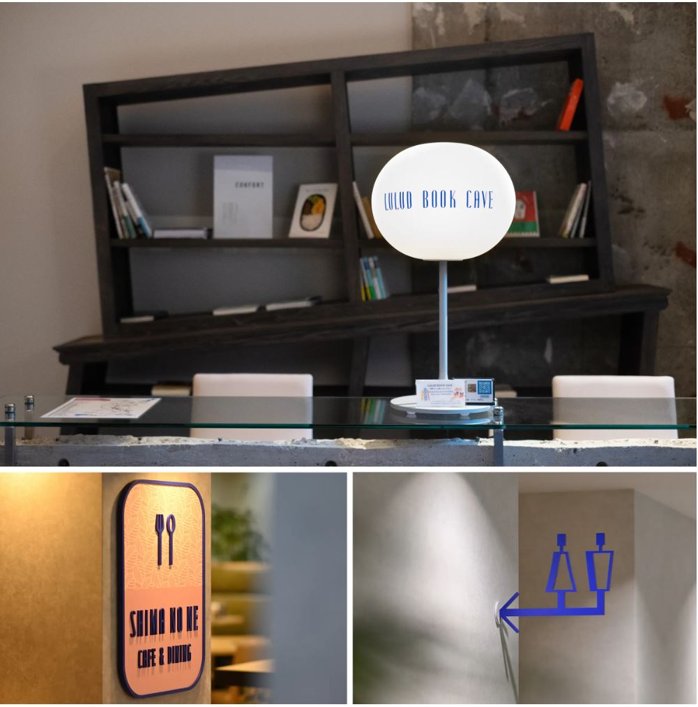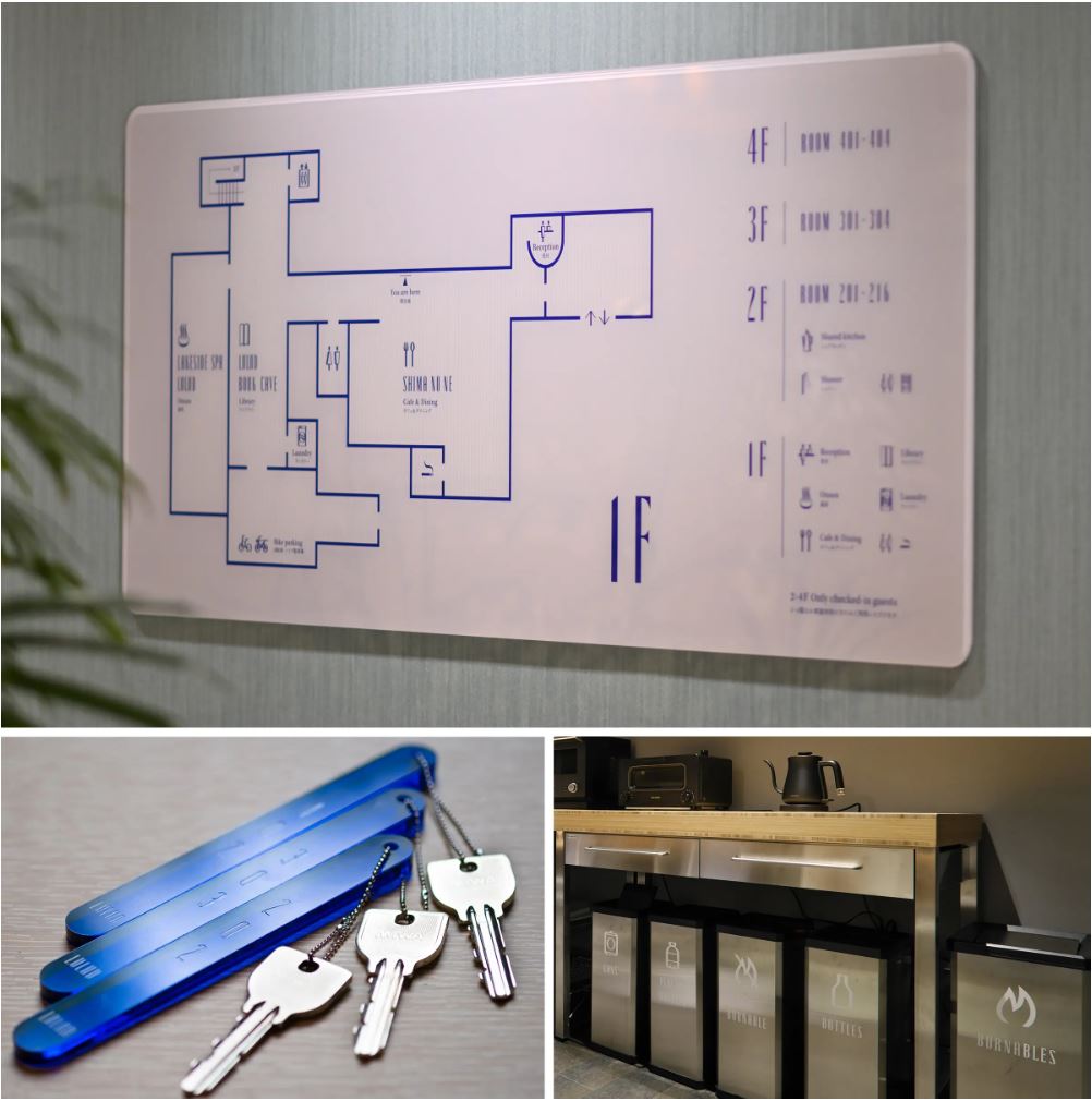 一階を中心に館内に「ART」を展示するSHIN湯治ホテル〈 LULUD ルルド 〉は、館内のサイン類なども「ナリカタデザイン相談室」によるグラフィックデザインでまとめていただきました。2023年3月には、吉澤指物店3代目・吉澤良一氏によるアートが展示されたお部屋(スパルーム)も完成し、「アートとホテルの融合」をカタチにしています。