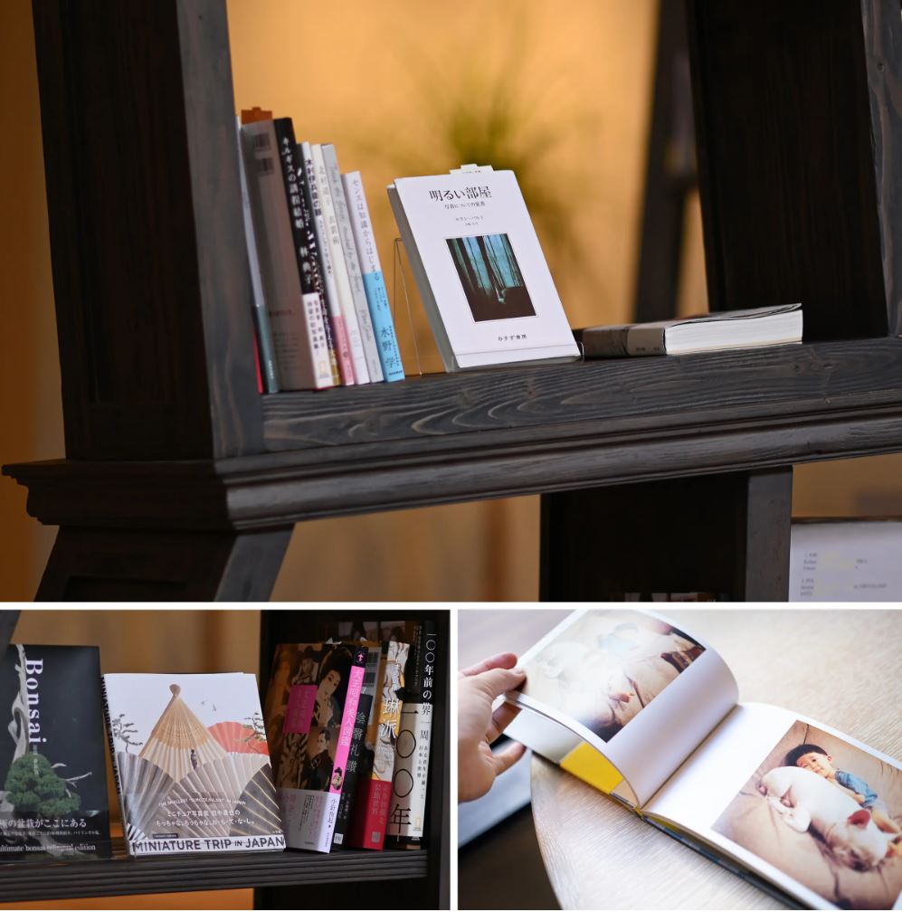 ライブラリーコーナーにも、アート関連の書籍や写真集を展示・販売しております。