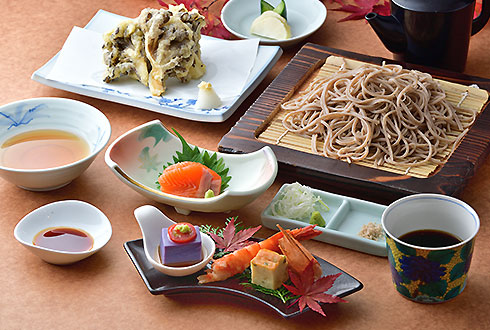 姉妹館「つるや」で長年料理長を務めた池田正監修による、つなぎなしの十割の手打ちそばはコシと香りに秀でた絶品。その他にも、ピッツァやそば粉ガレットなどの軽食、お酒のおつまみも各種ご用意しております。