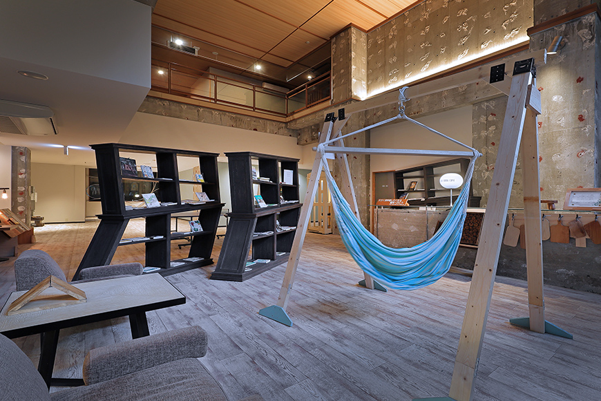 ライブラリー内に備え付けたハンモックに揺られながら読書をお楽しみください。購入していただければ部屋でお読みいただいたり、お持ち帰りいただくことも可能です。