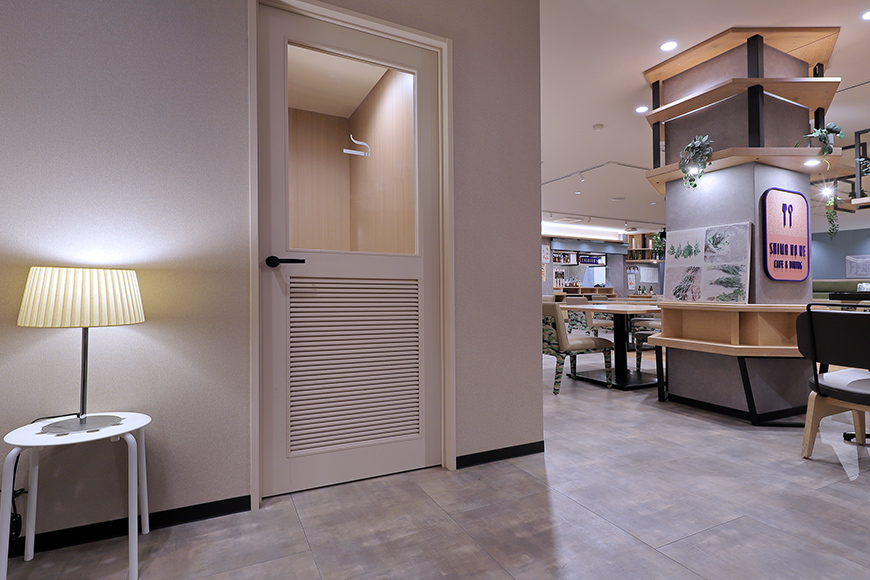 森をイメージした空間には、足を伸ばしてくつろげるソファコーナーや窓枠を椅子にしたスペースなど、寛ぎと面白さを散りばめています。靴も脱いで、開放的な雰囲気の中、皆さまで親睦を深めてください。
